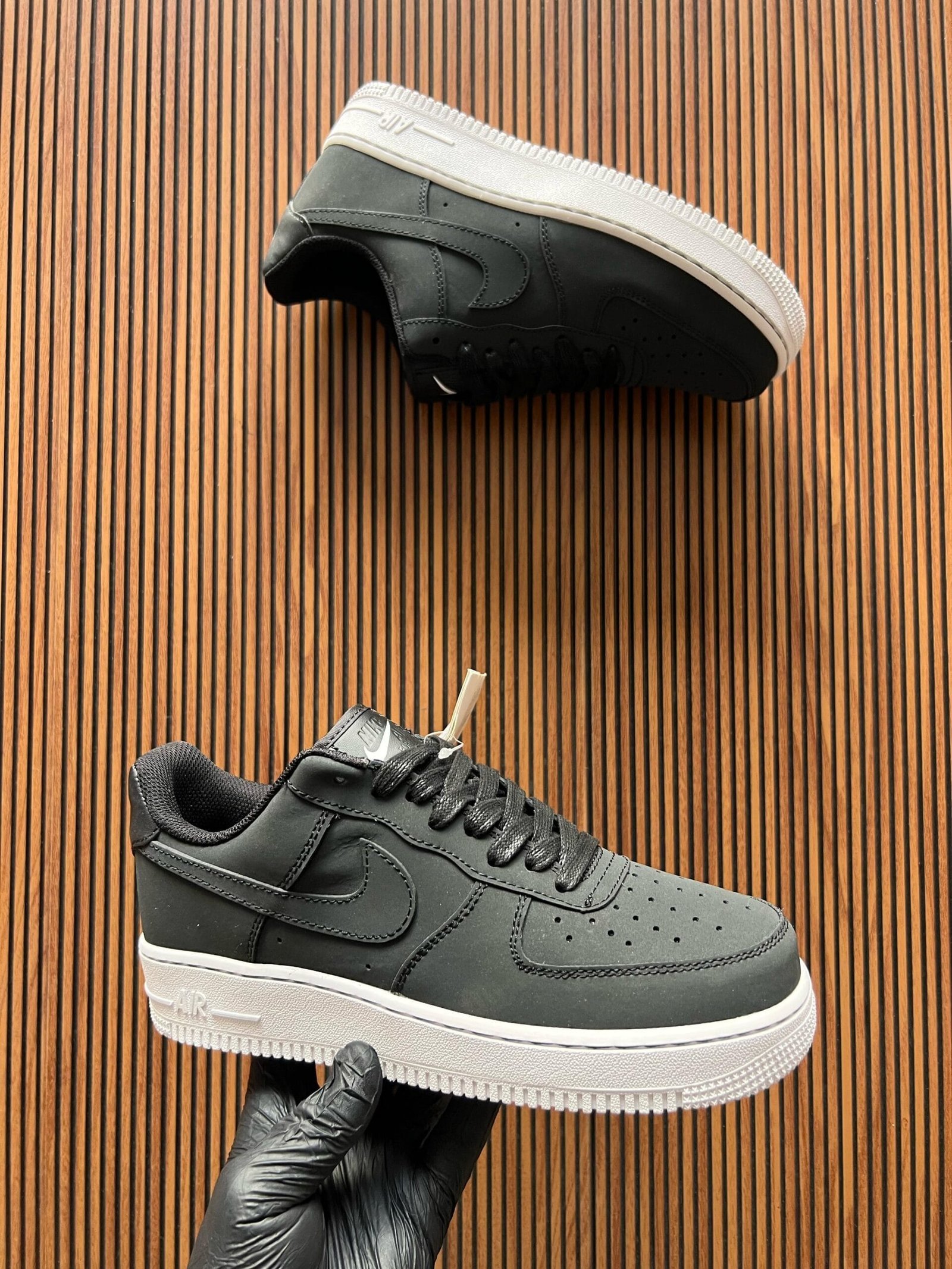Black Air Force And White Sole Sneakers