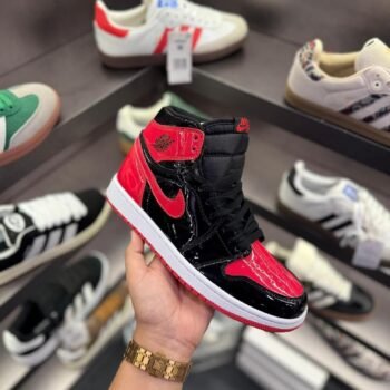 Patent Black and Red Classic Retro Sneakers – Timeless Style